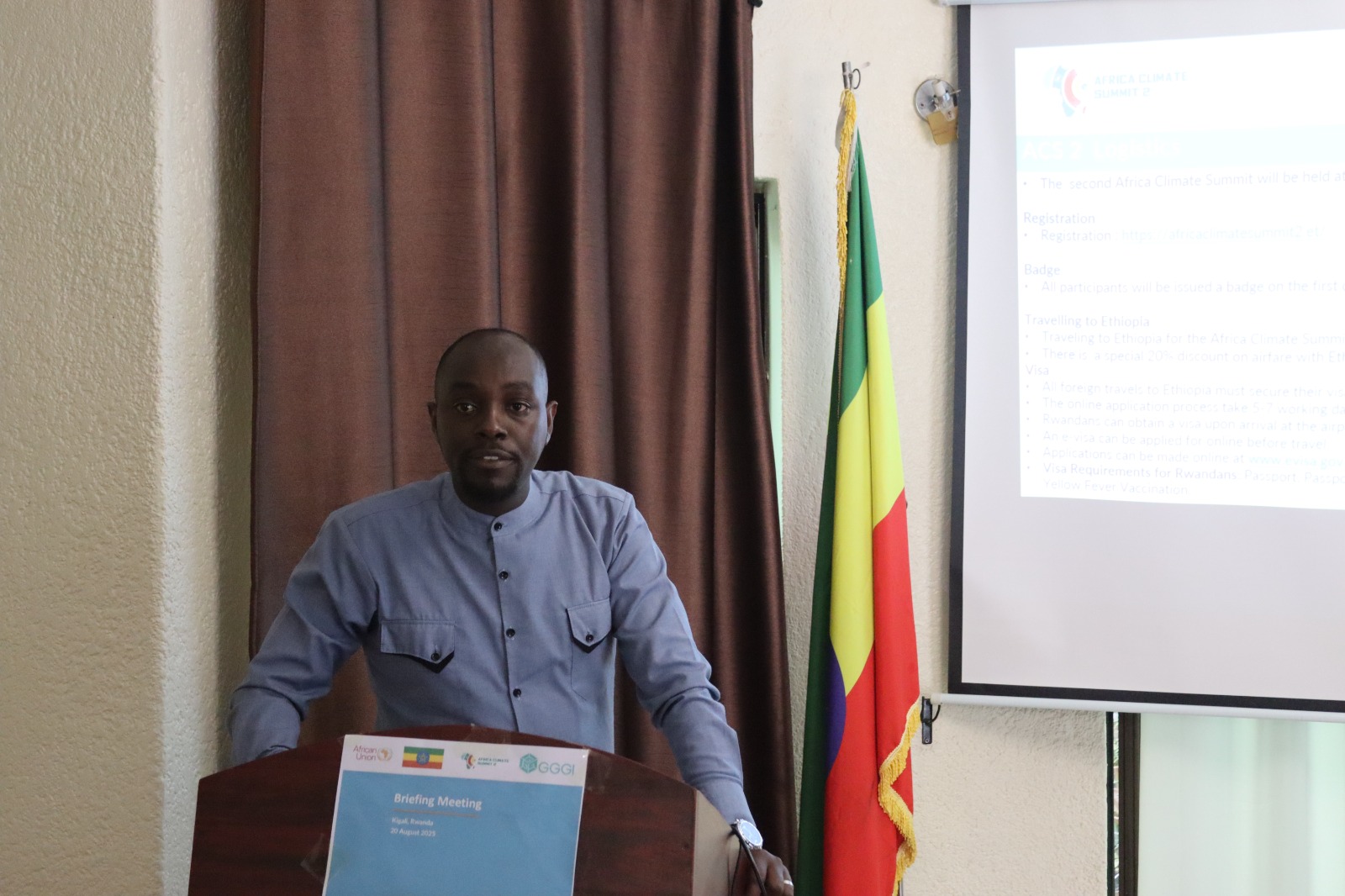 By: Charilogone Editorial TeamOn August 20, 2025, at 8:30 a.m., a briefing meeting was held at the Ethiopian Embassy in Kigali, chaired by His Excellency Mesfin Gebremariam Shawo, Ambassador Extraordinary and Plenipotentiary of the Federal Democratic Republic of Ethiopia to the Republic of Rwanda. This diplomatic engagement aimed to present the key issues of the Second African Climate Summit (ACS2), scheduled to take place in Addis Ababa from September 8 to 10, 2025, with preparatory sessions from September 5 to 7.